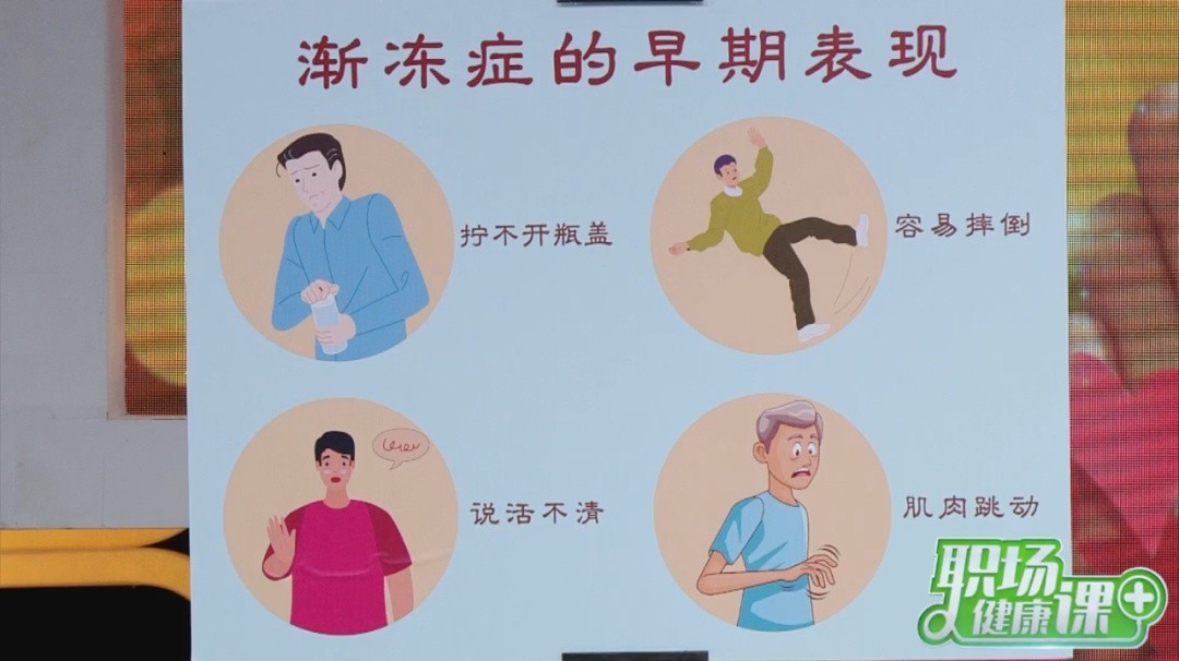 拧不开瓶盖偶尔遇到这种情况不要过于担心!渐冻症早期发病可表现为手部完成精细动作逐渐变得困难,持续数月后,手部虎口处的肌肉可能萎缩,然后出现抬胳膊困难,从一侧肢体发展到另一侧,有个逐渐发展的过程。容易摔倒患者可表现为走路时一只脚抬不起来,在平坦的路面上也容易摔倒。这种情况需注意与腰椎病进行区分,腰椎间盘突出压迫神经也会出现相似症状,但常伴有相应区域的麻木、疼痛等。说话不清渐冻症患者的咽喉肌、舌肌、面肌等肌肉逐渐萎缩,会出现说话不清楚、饮水呛咳等症状,但意识比较清醒。脑梗也会引起说话不清的症状,需注意鉴别,一般到医院进行CT等检查能够诊断脑梗情况。肌肉跳动渐冻症会导致肌肉纤维颤动,患者会感觉到“肉跳”。渐冻症的肉跳和痛性痉挛的区别在于:渐冻症的肉跳一般不痛,肉跳的部位往往局限于一块肌肉,不会引起关节、肢体的活动。生活中如果经常出现以上情况,要引起重视,及时就医。渐冻症是什么原因导致的?渐冻症的具体病因尚未完全明确,这也增加了治疗的难度。研究表明,以下几个因素可能与其发病有关:●遗传因素部分渐冻症患者有家族病史,提示遗传因素在疾病发生中起一定作用。●环境因素某些环境暴露可能增加渐冻症的风险,例如长期接触重金属、农药等有毒物质,被认为可能是诱发因素。●免疫系统异常等......渐冻症患者能运动吗?渐冻症患者根据病情进展,进行适度运动对于延缓肌肉萎缩、维持关节的活动范围有一定作用,比如走路和身体柔韧性的锻炼。一般来说,要避免力量训练,比如抓握橡胶握力圈等。渐冻症患者饮食上要注意什么?在患者能够正常进食时,应采用均衡饮食。咀嚼和吞咽困难的患者可进食软食、半流食,少食多餐。当患者无法吞咽、存在呛咳误吸风险时,可根据病情施行胃造瘘术,保证营养摄取。渐冻症虽让身体“冰冻”却无法冻结爱与希望的力量愿科学进步终将解锁生命的枷锁让“生而罕见”的他们不再孤单前行来源: 央视财经中国好医生